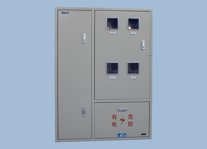 計(jì)量配電箱殼體采用優(yōu)質(zhì)冷軋鋼板沖壓成形,箱門(mén)設(shè)有觀察孔;